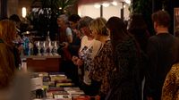 Der Büchertisch im Foyer des Kulturforums wird von der Literaturhandlung im Jüdischen Museum Franken gestellt.
