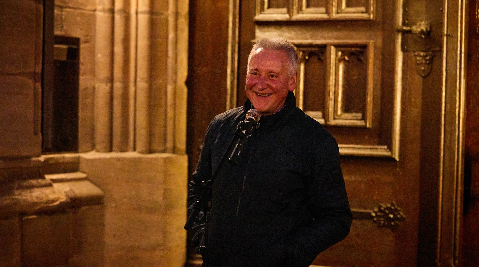 OB Thomas Jung begrüßt Gäste und Künstlerinnen und Künstler.