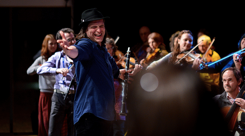 Klezmer ist Tanzmusik! Und Ihr, die Teilnehmenden des Klezmer-Workshops von Jewish Music Today, bildet auch dieses Jahr wieder ein lebhaftes und dynamisches Tanzorchester. Mit Hilfe meiner großartigen Kollegen Gal Klein (Klarinette), Yanush Hurwitz (Akkordeon) und meiner selbst (Klarinette, Saxophon, Tuba, Perkussion) erkunden wir die stilistischen Grundzüge und Feinheiten der jiddischen Musiktradition, stöbern durch altes Repertoire und überlieferte Tanzarten, um sie gemeinsam in die Gegenwart zu bringen. Bei unserem Abschlusskonzert, diesmal ganz ‚heymish‘ im Heinrich- Schliemann-Gymnasium, werden wir dann testen, ob unser Publikum wirklich noch stillsitzen kann!